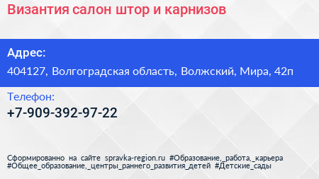 Византия, салон штор и карнизов по адресу 404127, Волгоградская область, Волжский, Мира, 42п в дальнейшем Организация, размещена в следующих категориях:
