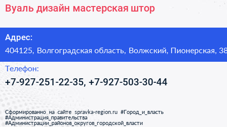 Вуаль, дизайн-мастерская штор по адресу 404125, Волгоградская область, Волжский, Пионерская, 38 в дальнейшем Организация, размещена в следующих категориях: