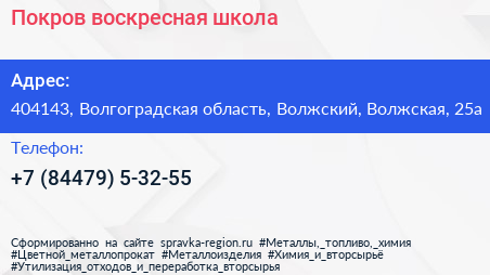 Покров, воскресная школа по адресу 404143, Волгоградская область, Волжский, Волжская, 25а в дальнейшем Организация, размещена в следующих категориях: