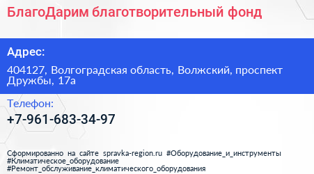 БлагоДарим, благотворительный фонд по адресу 404127, Волгоградская область, Волжский, проспект Дружбы, 17а в дальнейшем Организация, размещена в следующих категориях: