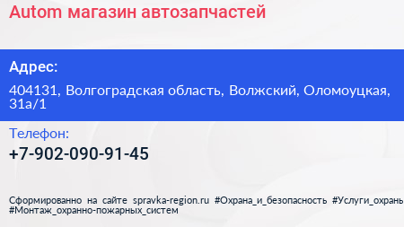 Autom, магазин автозапчастей по адресу 404131, Волгоградская область, Волжский, Оломоуцкая, 31а/1 в дальнейшем Организация, размещена в следующих категориях: