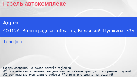 Газель, автокомплекс по адресу 404126, Волгоградская область, Волжский, Пушкина, 73Б в дальнейшем Организация, размещена в следующих категориях: