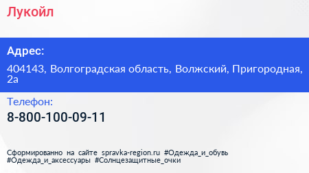 Лукойл по адресу 404143, Волгоградская область, Волжский, Пригородная, 2а в дальнейшем Организация, размещена в следующих категориях: