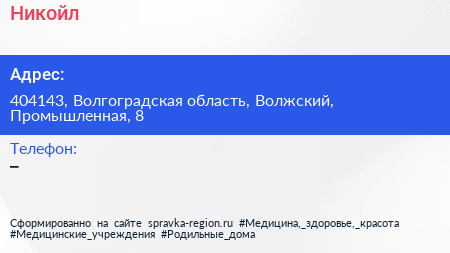 Никойл по адресу 404143, Волгоградская область, Волжский, Промышленная, 8 в дальнейшем Организация, размещена в следующих категориях: