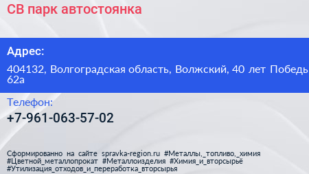 СВ-парк, автостоянка по адресу 404132, Волгоградская область, Волжский, 40 лет Победы, 62а в дальнейшем Организация, размещена в следующих категориях: