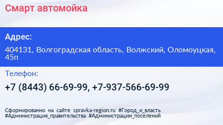 Смарт, автомойка по адресу 404131, Волгоградская область, Волжский, Оломоуцкая, 45п в дальнейшем Организация, размещена в следующих категориях: