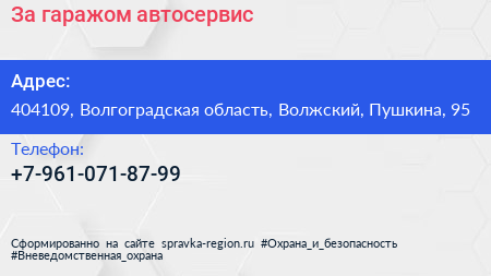 За гаражом, автосервис по адресу 404109, Волгоградская область, Волжский, Пушкина, 95 в дальнейшем Организация, размещена в следующих категориях: