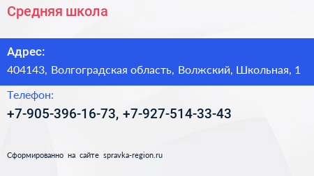 Средняя школа по адресу 404143, Волгоградская область, Волжский, Школьная, 1 в дальнейшем Организация, размещена в следующих категориях:
