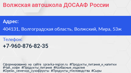 Волжская автошкола, ДОСААФ России по адресу 404131, Волгоградская область, Волжский, Мира, 53ж в дальнейшем Организация, размещена в следующих категориях: