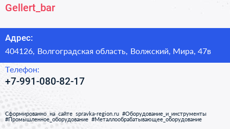 #Gellert_bar по адресу 404126, Волгоградская область, Волжский, Мира, 47в в дальнейшем Организация, размещена в следующих категориях: