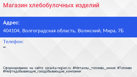 Магазин хлебобулочных изделий по адресу 404104, Волгоградская область, Волжский, Мира, 7Б в дальнейшем Организация, размещена в следующих категориях: