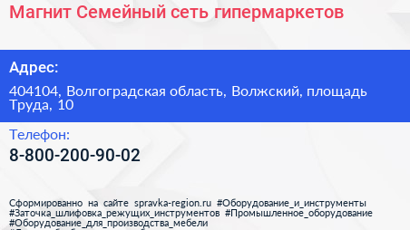 Магнит Семейный, сеть гипермаркетов по адресу 404104, Волгоградская область, Волжский, площадь Труда, 10 в дальнейшем Организация, размещена в следующих категориях:
