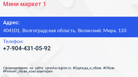 Мини-маркет №1 по адресу 404101, Волгоградская область, Волжский, Мира, 133 в дальнейшем Организация, размещена в следующих категориях: