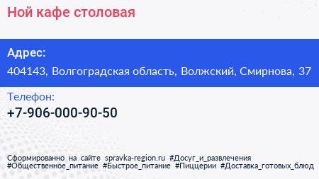 Ной, кафе-столовая по адресу 404143, Волгоградская область, Волжский, Смирнова, 37 в дальнейшем Организация, размещена в следующих категориях: