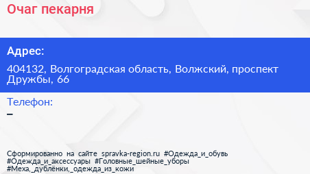 Очаг, пекарня по адресу 404132, Волгоградская область, Волжский, проспект Дружбы, 66 в дальнейшем Организация, размещена в следующих категориях: