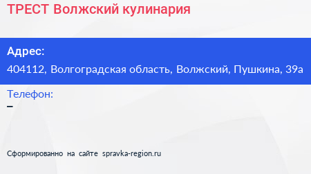 ТРЕСТ-Волжский, кулинария по адресу 404112, Волгоградская область, Волжский, Пушкина, 39а в дальнейшем Организация, размещена в следующих категориях: