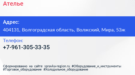 Ателье по адресу 404131, Волгоградская область, Волжский, Мира, 53ж в дальнейшем Организация, размещена в следующих категориях: