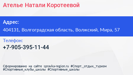 Ателье Натали Коротеевой по адресу 404131, Волгоградская область, Волжский, Мира, 57 в дальнейшем Организация, размещена в следующих категориях: