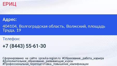 ЕРИЦ по адресу 404104, Волгоградская область, Волжский, площадь Труда, 19 в дальнейшем Организация, размещена в следующих категориях: