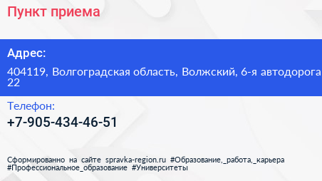 Пункт приема по адресу 404119, Волгоградская область, Волжский, 6-я автодорога, 22 в дальнейшем Организация, размещена в следующих категориях: