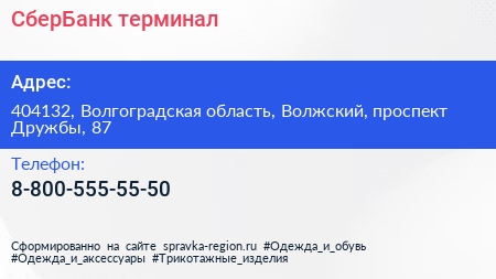 СберБанк, терминал по адресу 404132, Волгоградская область, Волжский, проспект Дружбы, 87 в дальнейшем Организация, размещена в следующих категориях: