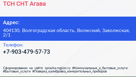 ТСН СНТ Агава по адресу 404130, Волгоградская область, Волжский, Заволжская, 2/1 в дальнейшем Организация, размещена в следующих категориях: