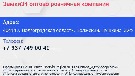 Замки34, оптово-розничная компания по адресу 404112, Волгоградская область, Волжский, Пушкина, 39ф в дальнейшем Организация, размещена в следующих категориях: