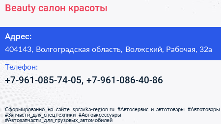 Beauty, салон красоты по адресу 404143, Волгоградская область, Волжский, Рабочая, 32а в дальнейшем Организация, размещена в следующих категориях: