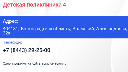 Детская поликлиника №4 по адресу 404131, Волгоградская область, Волжский, Александрова, 32а в дальнейшем Организация, размещена в следующих категориях: