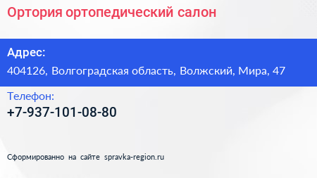 Ортория, ортопедический салон по адресу 404126, Волгоградская область, Волжский, Мира, 47 в дальнейшем Организация, размещена в следующих категориях:
