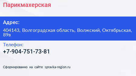 Парикмахерская по адресу 404143, Волгоградская область, Волжский, Октябрьская, 89в в дальнейшем Организация, размещена в следующих категориях: