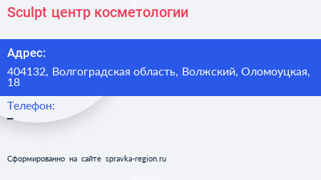 Sculpt, центр косметологии по адресу 404132, Волгоградская область, Волжский, Оломоуцкая, 18 в дальнейшем Организация, размещена в следующих категориях: