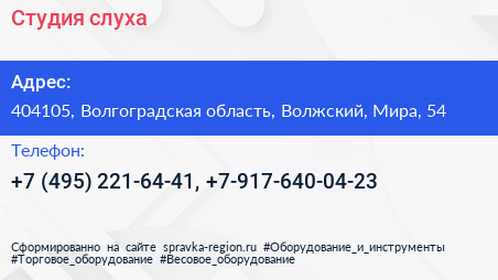 Студия слуха по адресу 404105, Волгоградская область, Волжский, Мира, 54 в дальнейшем Организация, размещена в следующих категориях: