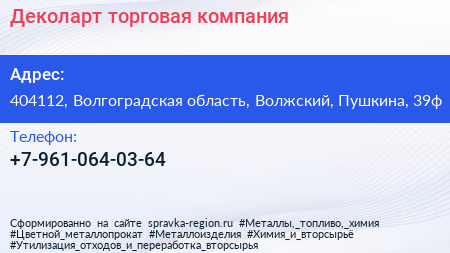 Деколарт, торговая компания по адресу 404112, Волгоградская область, Волжский, Пушкина, 39ф в дальнейшем Организация, размещена в следующих категориях: