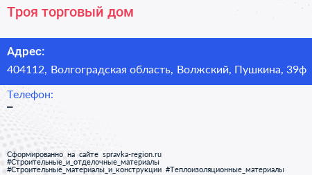 Троя, торговый дом по адресу 404112, Волгоградская область, Волжский, Пушкина, 39ф в дальнейшем Организация, размещена в следующих категориях: