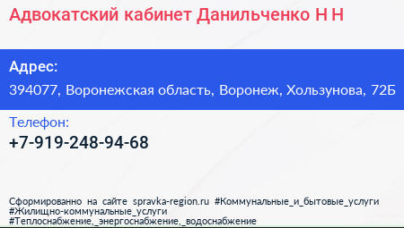 Адвокатский кабинет Данильченко Н.Н. в Воронеже