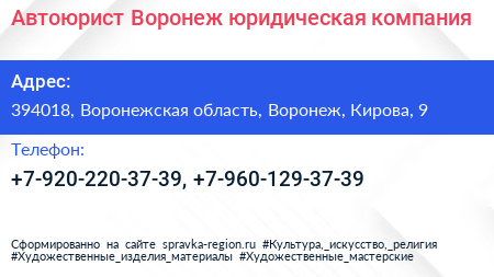 Автоюрист Воронеж, юридическая компания по адресу 394018, Воронежская область, Воронеж, Кирова, 9 в дальнейшем Организация, размещена в следующих категориях: