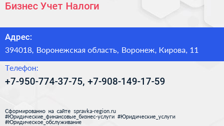 Бизнес-Учет-Налоги по адресу 394018, Воронежская область, Воронеж, Кирова, 11 в дальнейшем Организация, размещена в следующих категориях: