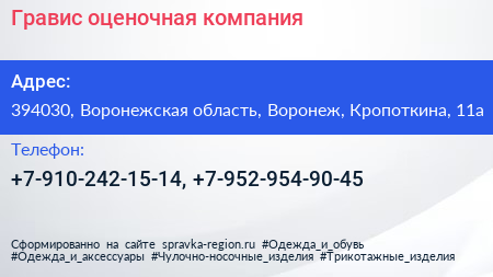Гравис, оценочная компания по адресу 394030, Воронежская область, Воронеж, Кропоткина, 11а в дальнейшем Организация, размещена в следующих категориях:
