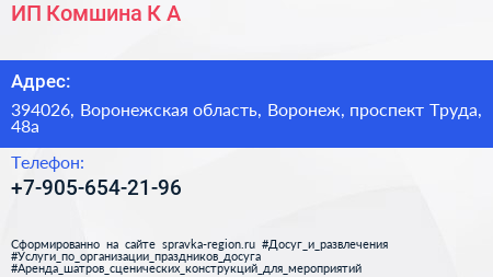 ИП Комшина К.А. по адресу 394026, Воронежская область, Воронеж, проспект Труда, 48а в дальнейшем Организация, размещена в следующих категориях: