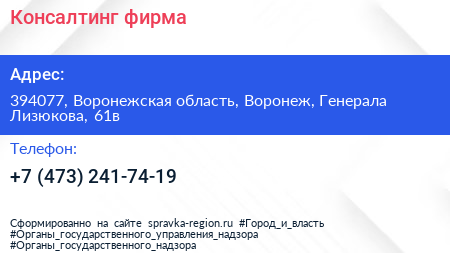Консалтинг, фирма по адресу 394077, Воронежская область, Воронеж, Генерала Лизюкова, 61в в дальнейшем Организация, размещена в следующих категориях:
