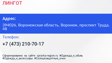 ЛИНГОТ по адресу 394026, Воронежская область, Воронеж, проспект Труда, 48 в дальнейшем Организация, размещена в следующих категориях: