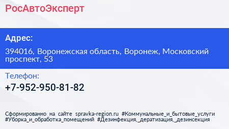 РосАвтоЭксперт по адресу 394016, Воронежская область, Воронеж, Московский проспект, 53 в дальнейшем Организация, размещена в следующих категориях: