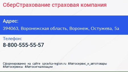 СберСтрахование, страховая компания по адресу 394063, Воронежская область, Воронеж, Остужева, 5а в дальнейшем Организация, размещена в следующих категориях: