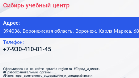 Сибирь, учебный центр по адресу 394036, Воронежская область, Воронеж, Карла Маркса, 68 в дальнейшем Организация, размещена в следующих категориях: