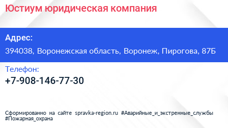 Юстиум, юридическая компания по адресу 394038, Воронежская область, Воронеж, Пирогова, 87Б в дальнейшем Организация, размещена в следующих категориях: