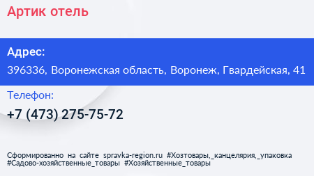 Артик, отель по адресу 396336, Воронежская область, Воронеж, Гвардейская, 41 в дальнейшем Организация, размещена в следующих категориях: