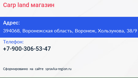 Carp land, магазин по адресу 394068, Воронежская область, Воронеж, Хользунова, 38/9 в дальнейшем Организация, размещена в следующих категориях: