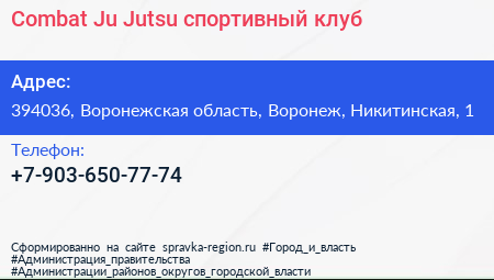 Combat Ju-Jutsu, спортивный клуб по адресу 394036, Воронежская область, Воронеж, Никитинская, 1 в дальнейшем Организация, размещена в следующих категориях: