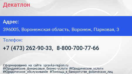 Декатлон по адресу 396005, Воронежская область, Воронеж, Парковая, 3 в дальнейшем Организация, размещена в следующих категориях: